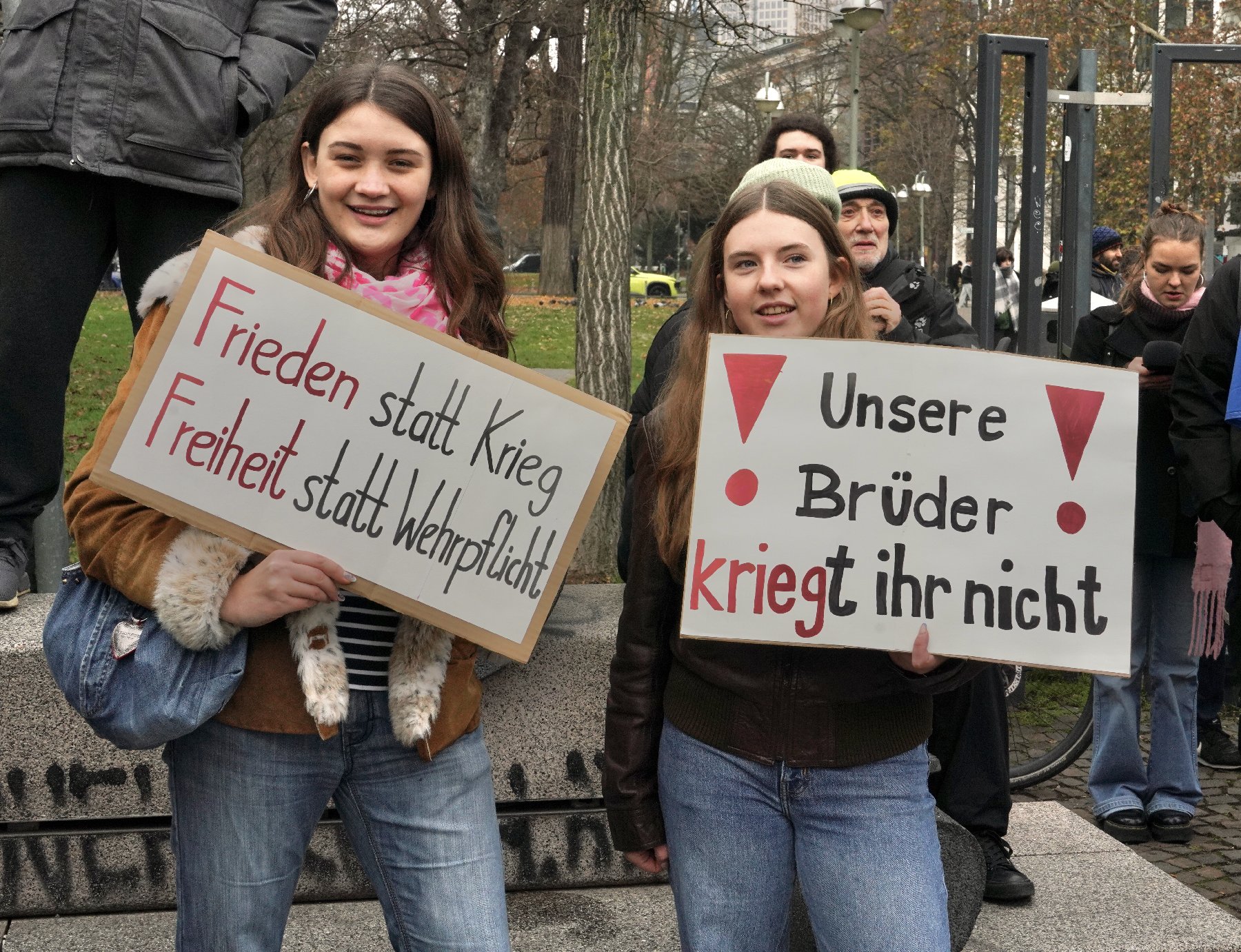 Während in den warmen Räumen des Bundestags mit weitgehend leeren Plätzen über eine “Modernisierung der Wehrpflicht” (Zitat Julia Klöckner) abgestimmt wurde, trafen sich hier